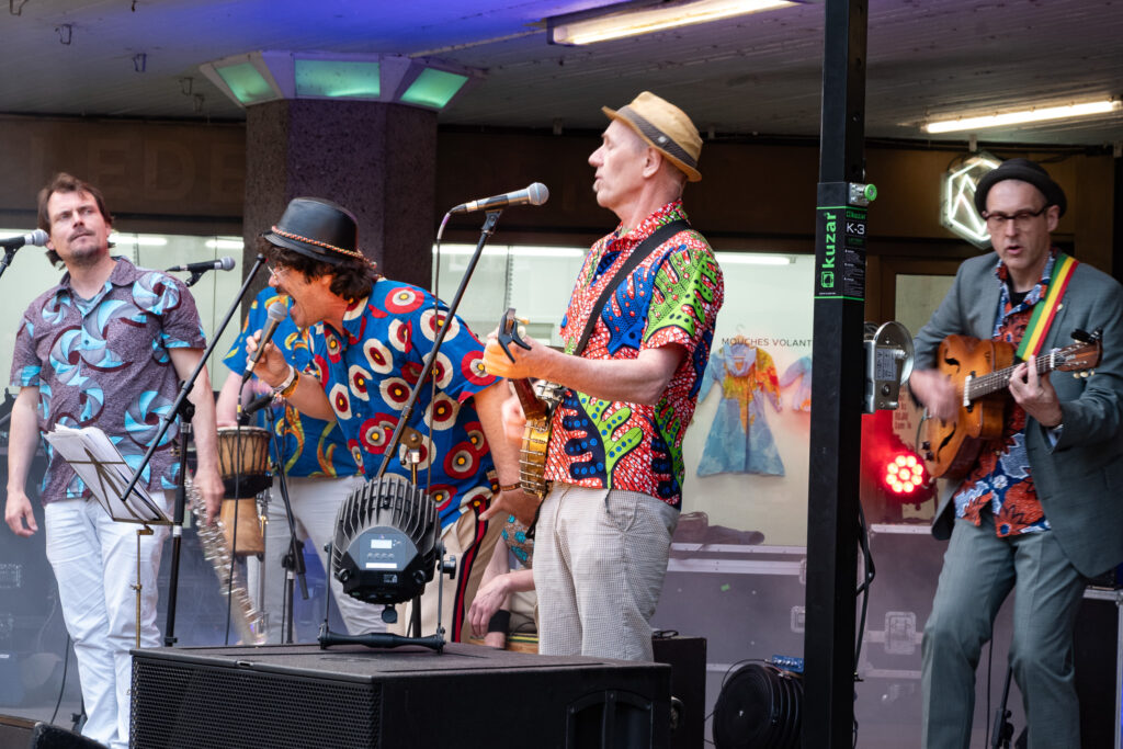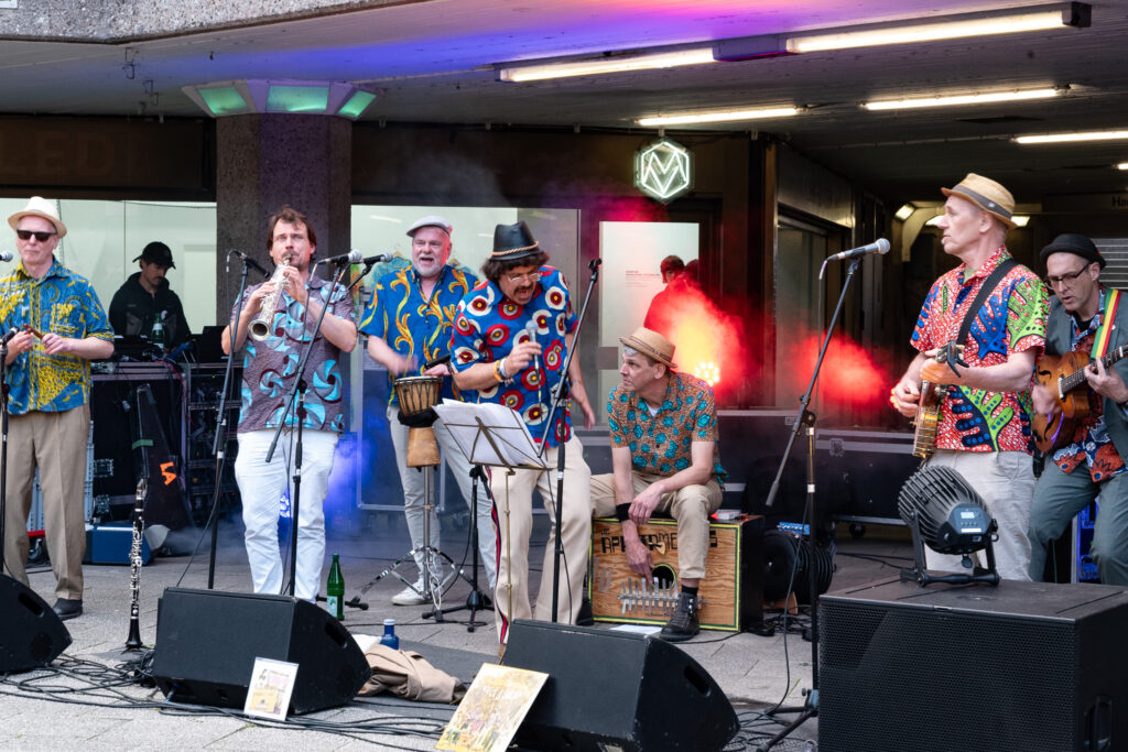 Los Apartamentos spielen Mento. Dieser karibische Vintagesound – chillig, schräg und ansteckend fröhlich – bereitete im Jamaika der 50er-Jahre mit akustischen Instrumenten Ska und Reggae den Boden. Als einzige Mentoband in Deutschland erweckt das Kölner Boomer-Septet diesen eingängigen Inselklang zu neuem Partyleben. Ihrem Debutalbum „Water di Garden“ folgte erst gerade die Präsentation der Single „Mama Look a booboo“. Am 8.5. wollen Los Apartamentos dem Brutalismus des Ebertplatzes das Flair von Montego Bay einhauchen.