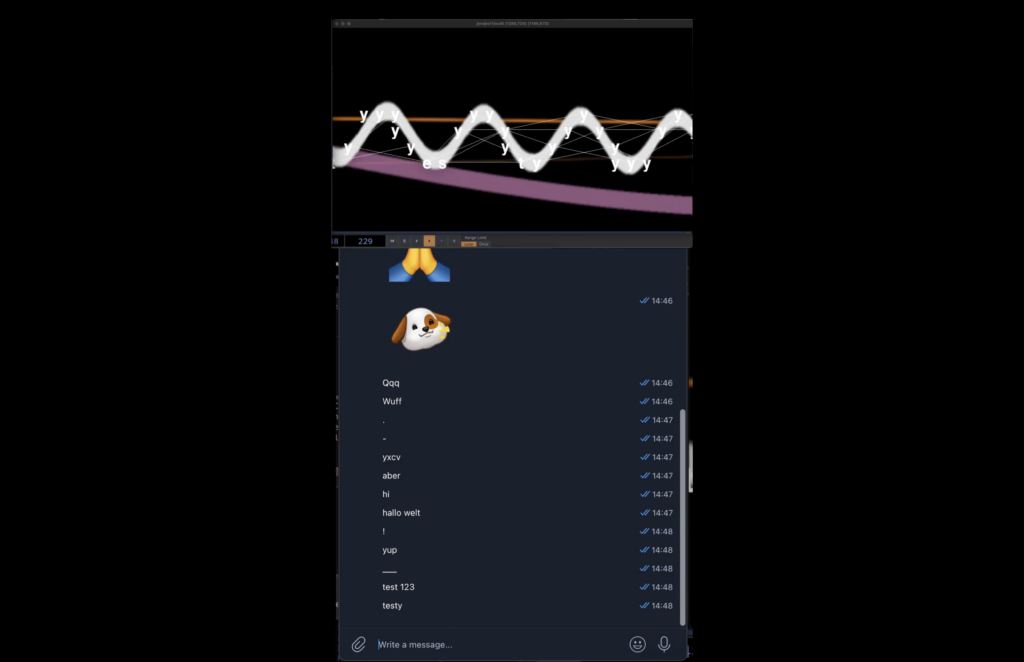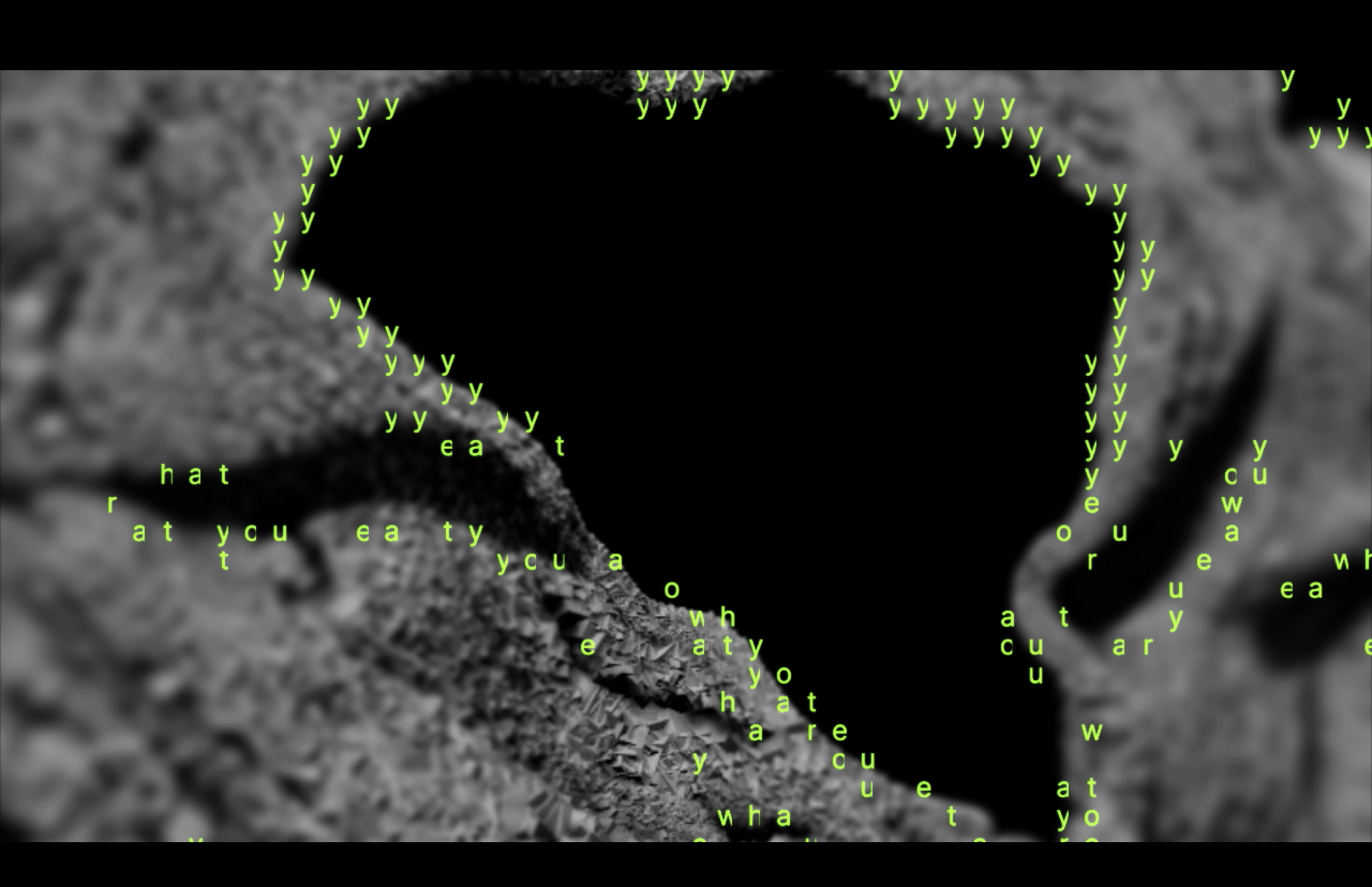 Das Projekt „Video2Text“ untersucht das Zusammenspiel von Schriftzeichen und der Zeichenhaftigkeit bewegter Bilder. Dabei verwandelt es die Stimmen des Publikums in Echtzeit in visuelle Zeichenwelten. Ein interaktives Spiel aus Schrift, Bild und Code, das die Basis unserer digitalen Kommunikation sichtbar macht. Live Zugang zum Kunstwerk mittels Chat-Funktion.