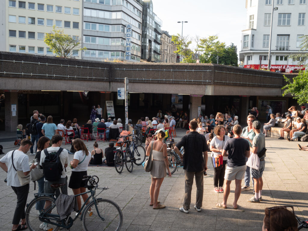 Miss Cherrywine ist Chanteuse, Komponistin, Musikkabarettistin und schon seit Jahren die goldene Stimme des BallroomSyndikats. 2019 war sie schonmal auf dem Ebertplatz zu Gast, damals bei über 40 Grad hatte sie sich fast die Finger verbrannt an den schwarzen Tasten ihres Pianos und trotzdem eine unglaubliche Performance abgeliefert. Wir hoffen diesmal auf moderates Wetter und sind gespannt, welche alten Schätzchen sie für uns im Gepäck hat.