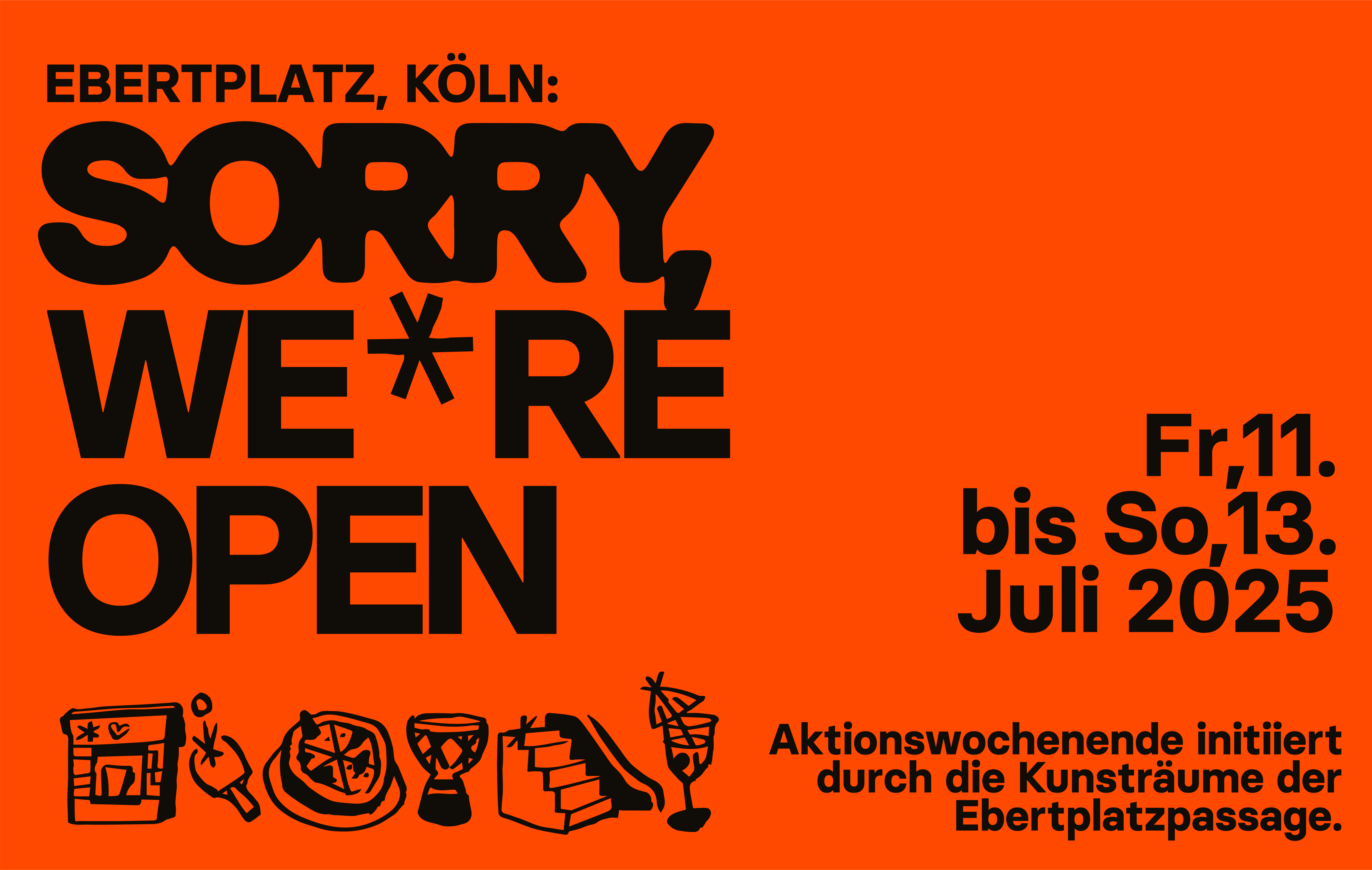 Am Wochenende von 11.7. bis 13.7. laden Brunnen e.V. (Zusammenschluss der Kunsträume) gemeinsam mit Unser Ebertplatz zu einem dreitägigen Aktionswochenende mit Performance, Musik, Tanz, Filmprogramm und Bildender Kunst ein. Die Aktionen finden vor allem in und um die Passage statt und zeigen Potentiale der vorhandenen Architektur und Infrastruktur auf. Im Sinne des aktuell in Umsetzung befindlichen Reallabors soll mit dem Aktionswochenende die Nutzungsdichte und Nutzungsvielfalt erweitert werden. Mit temporären Interventionen werden neue räumliche Möglichkeiten ausgetestet.